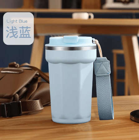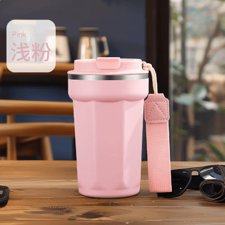 This thermos tumbler is equipped with a sturdy handle, making it easy and comfortable to hold. Ideal for busy lifestyles, this coffee cup provides both functionality and style in one durable package.