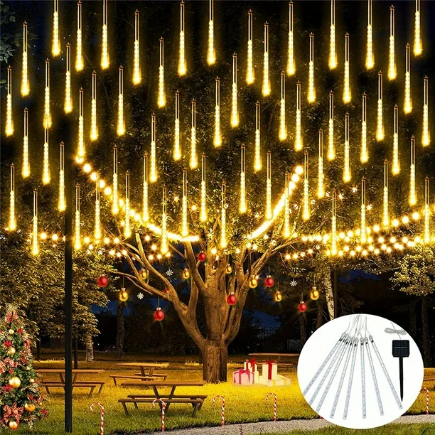 Solar Meteor Rain Lights, Outdoor Waterproof Solar String Lights, 8 Tube 192LEDs/288LEDs Solar Christmas Tree Lights For Tree Wedding Xmas Holiday Party Patio